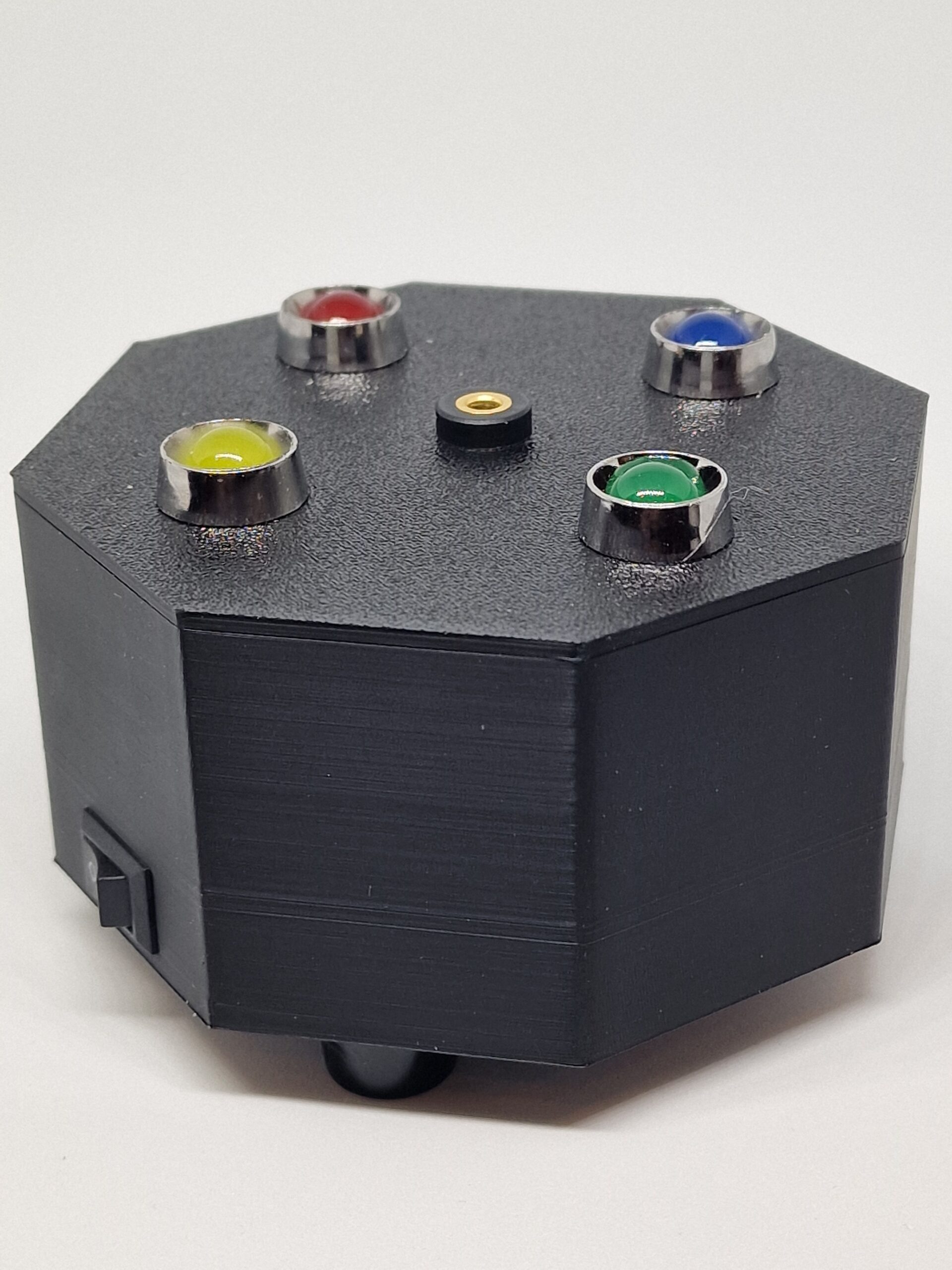 Place the REM Pod on the floor or any flat surface and try to get spirit to come towards the device. If anything goes near the antenna the device will make a noise and light upnthe lights. The lights will flash in a random order depending on how close the entity is to the antenna. If the antenna is touched and held for any length of time a high pitch tone will sound and all 4 lights will light solid until the antenna is released.